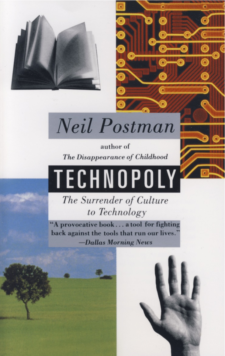 :: Neil Postman, Technopoly. The Surrender of Culture to Technology, Nova York: Vintage Books, 1993, 222 p. ISBN 0-679-74540-8. [N’hi ha traducció catalana de Betty Alsina Keith: Tecnòpoli, Barcelona: Llibres de l’Índex, 1994] ::