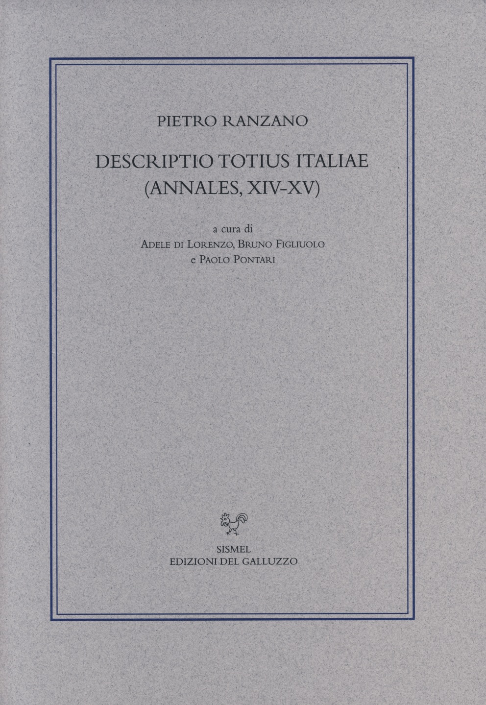 :: Pietro Ranzano, Descriptio totius Italiae (Annales XIV-XV), a cura d’Adele Di Lorenzo, Bruno Figliuolo i Paolo Pontari, Florència: SISMEL – Edizioni del Galluzzo, 2007, 479 p., il. ISBN 978-88-8450-275-9 ::