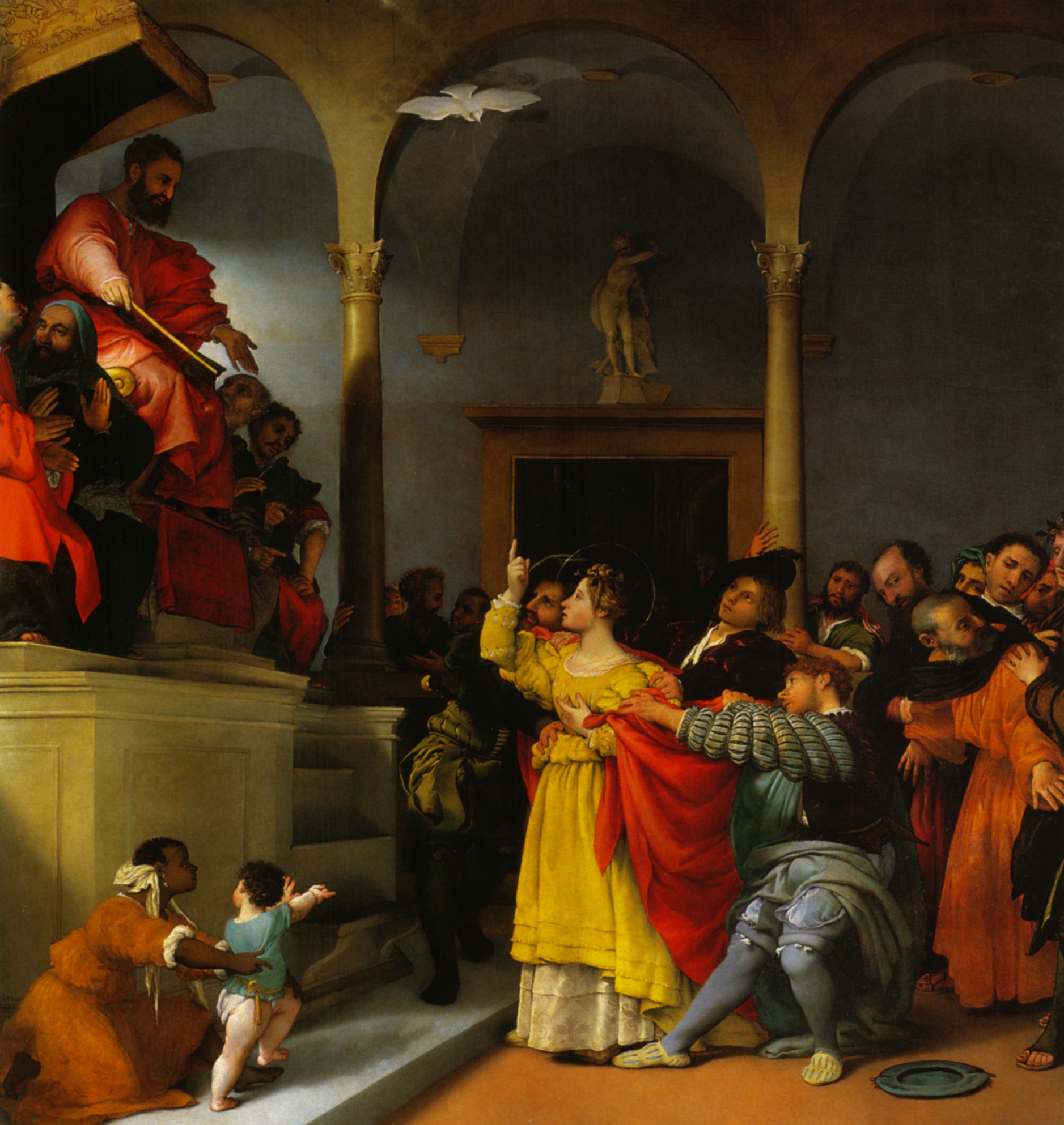 Per què la mare ab la fila venien tot dia de so del lur e daven per amor de Déu. L’espòs de Lúcia, oynt assò dir, accusà-la davant Pasquasi, consular, que era christiana. E interroguada, co respoés ardidament, dix Pasquasi: