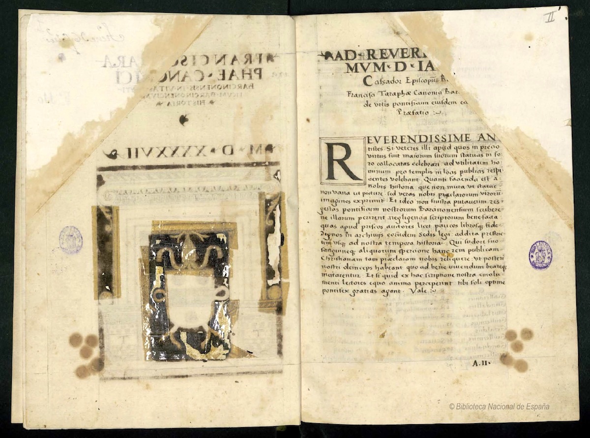 (Una primera versió de l’apunt a El bisbe Margarit i la seva època, Girona: Fundació Caixa Girona, 2006, p. 62-63. Imatge: Historia de vitis pontificum de Tarafa, BNE, ms. 1516.)
