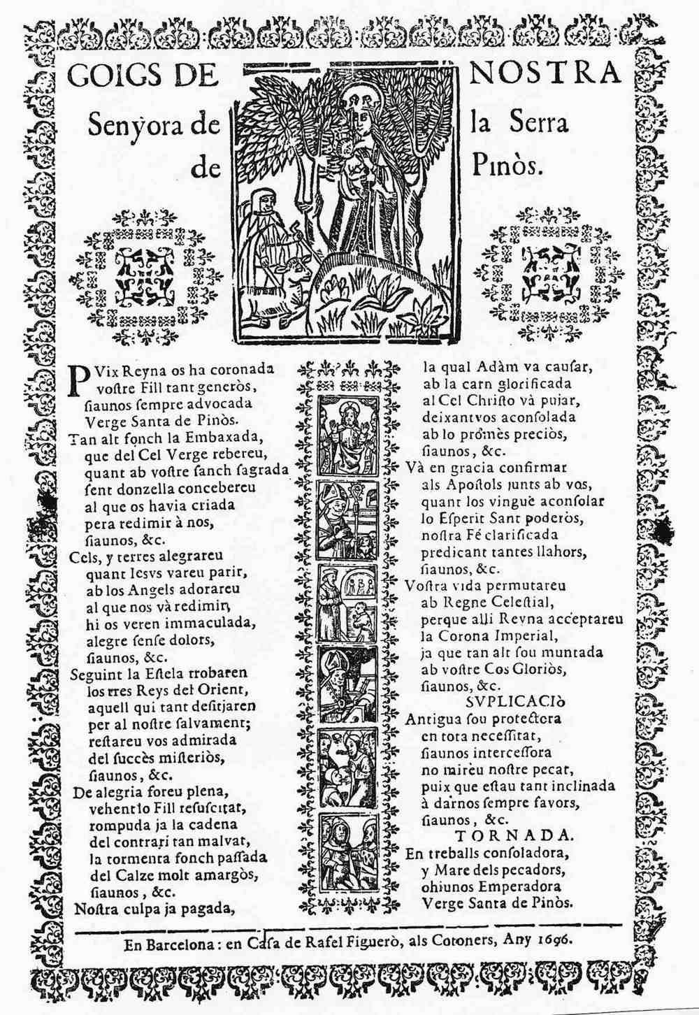 ♣ Goigs de Nostra Senyora de la Serra de Pinòs, Barcelona: Rafael Figueró, 1696.