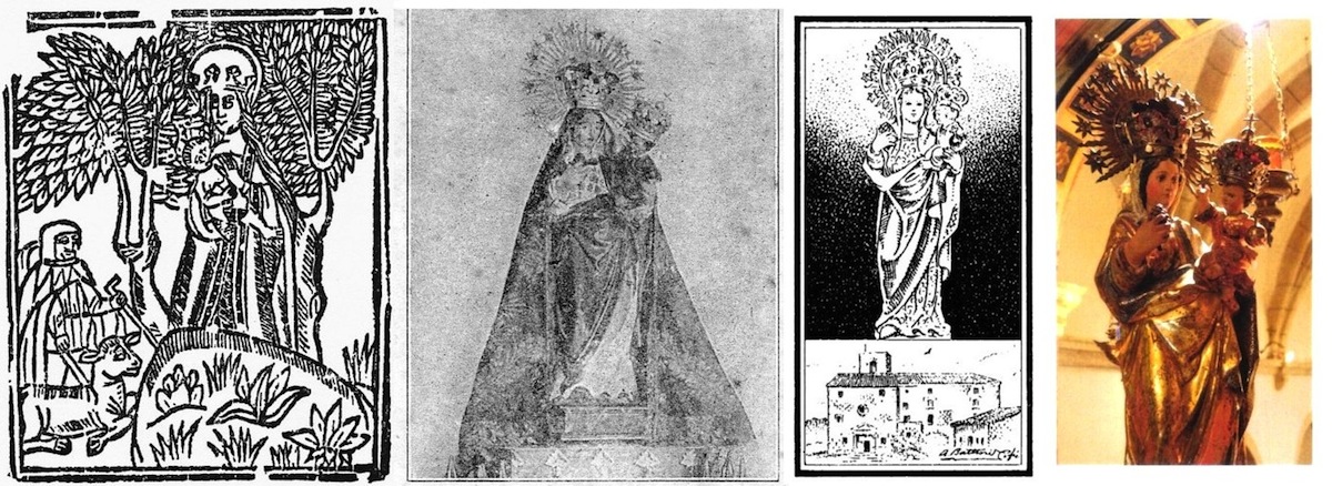 Pel que fa a les imatges que apareixen als goigs, són també curioses. Als més antics ens trobem una xilografia que representa l’aparició mariana explicada per Narcís Camós, malgrat que al seu text no se’n faci cap referència. Les següents imatges són gravats marians usuals fins trobar un fotogravat de la imatge als goigs de 1948, una xilografia firmada per A. Batllori Xofre, amb dibuix del santuari actual als de 1988 i una fotografia al de 2011.