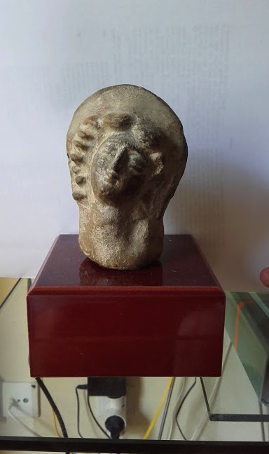 Amics meus que he consultat, que són del gremi de l’arqueologia, m’han dit que té l’aspecte d’antefixa (unes peces que es posaven a les vores dels teulats per cobrir el badiu de la teula corba (com les nostres “àrabs”) que unia les dues tegulae planes. Però no creien pas que ho fos (hauria d’ésser buida de darrere). Més aviat fa pensar en un exvot fet a motlle, a l’igual que les antefixes. Se n’han trobat a centenars en determinats santuaris italians, d’un art grec hel·lenístic. El Museu de Sant Pere de Galligants en té moltes a les seves reserves, comprades al segle XIX. Aquestes terracotes, de les quals se n’enfornaven a mils per un sistema d’emmotllatge de fang, funcionaven com exvots. Eren figuretes votives que servien per fer ofrenes. Com a petits deus de la llar, figuraven com a imatges d’altars, s’oferien en cerimònies de passatge, per demanar favors per a la casa, per al benestar dels fills, per a la salut familiar.