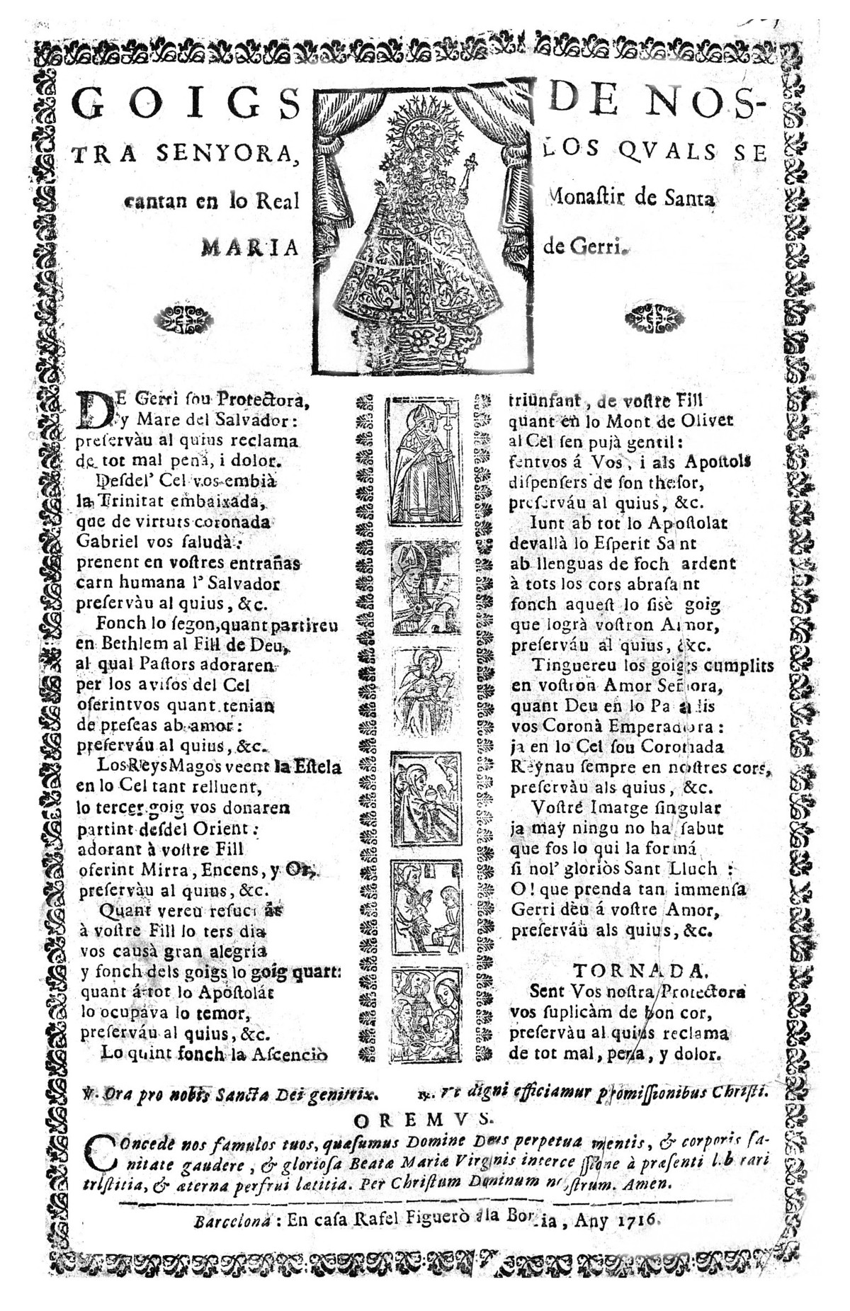 ◊ Goigs de Nostra Senyora, los quals se cantan en lo Real Monastir de Santa Maria de Gerri, Barcelona: en casa de Rafel Figueró, 1716. “De Gerri sou protectora / y Mare del Salvador”. (BC)