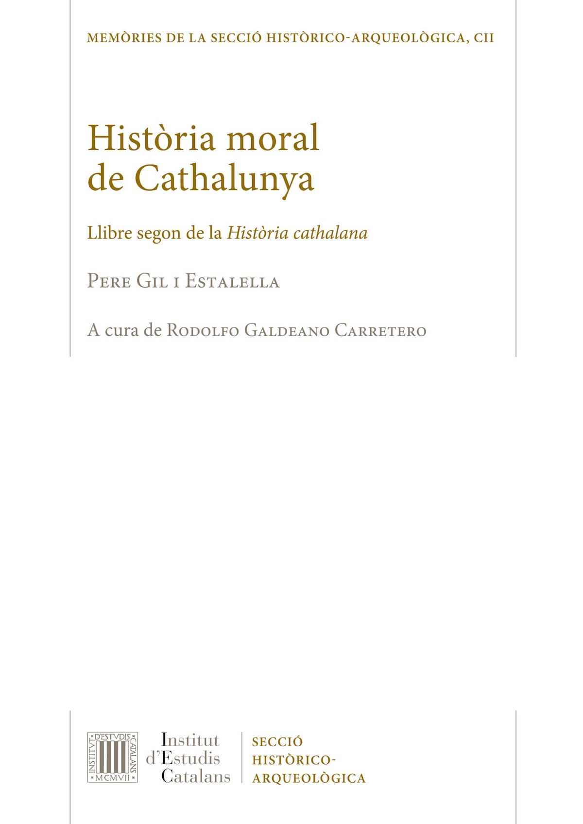 :: Pere Gil i Estalella, Història moral de Cathalunya: Llibre segon de la Història cathalana, a cura de Rodolfo Galdeano Carretero, Barcelona: Institut d’Estudis Catalans, 2017 (Memòries de la Secció Històrico-Arqueològica, 102), 560 p. ISBN 978-84-9965-174-3. ::