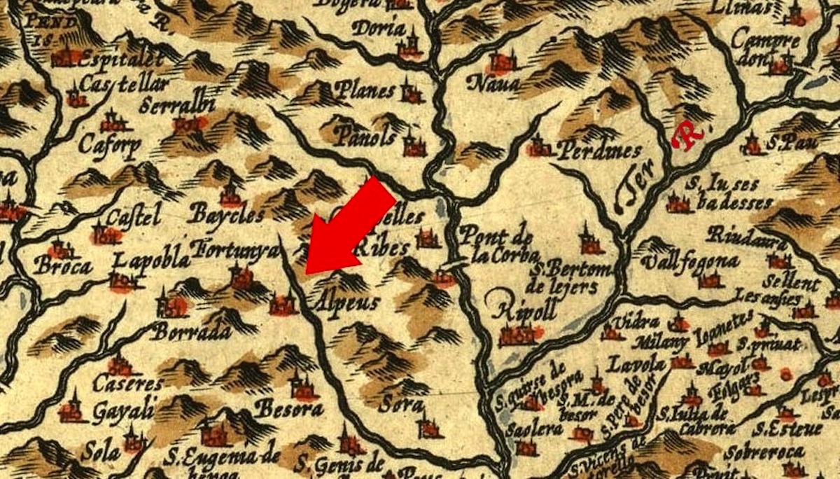 Assí trobaren Nostra Senyora de Mongrony, anomenada de la Llet, en esta font, ab una campana, que trobaren dos toros, y vaquers de Don Galceran de Pinós, compte de Mataplana, en lo any 804.[3]