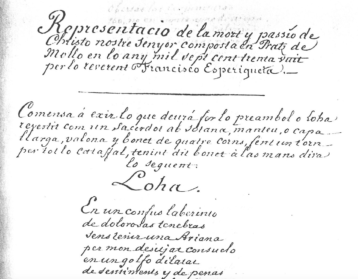 Citació recomanada: Pep Vila, “Nota i edició a una lloa d’una passió barroca rossellonesa (1738)”, Vademècum (10/07/2021). [En línia: https://mariatoldra.com/2021/07/10/nota-i-edicio-a-una-lloa-duna-passio-barroca-rossellonesa-1738 [dia de la consulta]