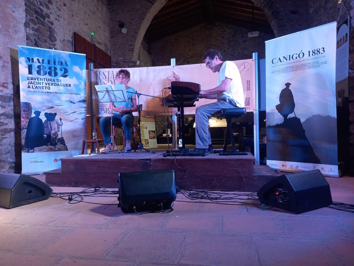 Imatge destacada: L’actriu Sílvia Bel i el pianista Carles Beltran interpreten fragments de Canigó a la “Festa Verdaguer” (Sant Miquel de Cuixà, 5 de juny de 2022). Font: Fundació Jacint Verdaguer.